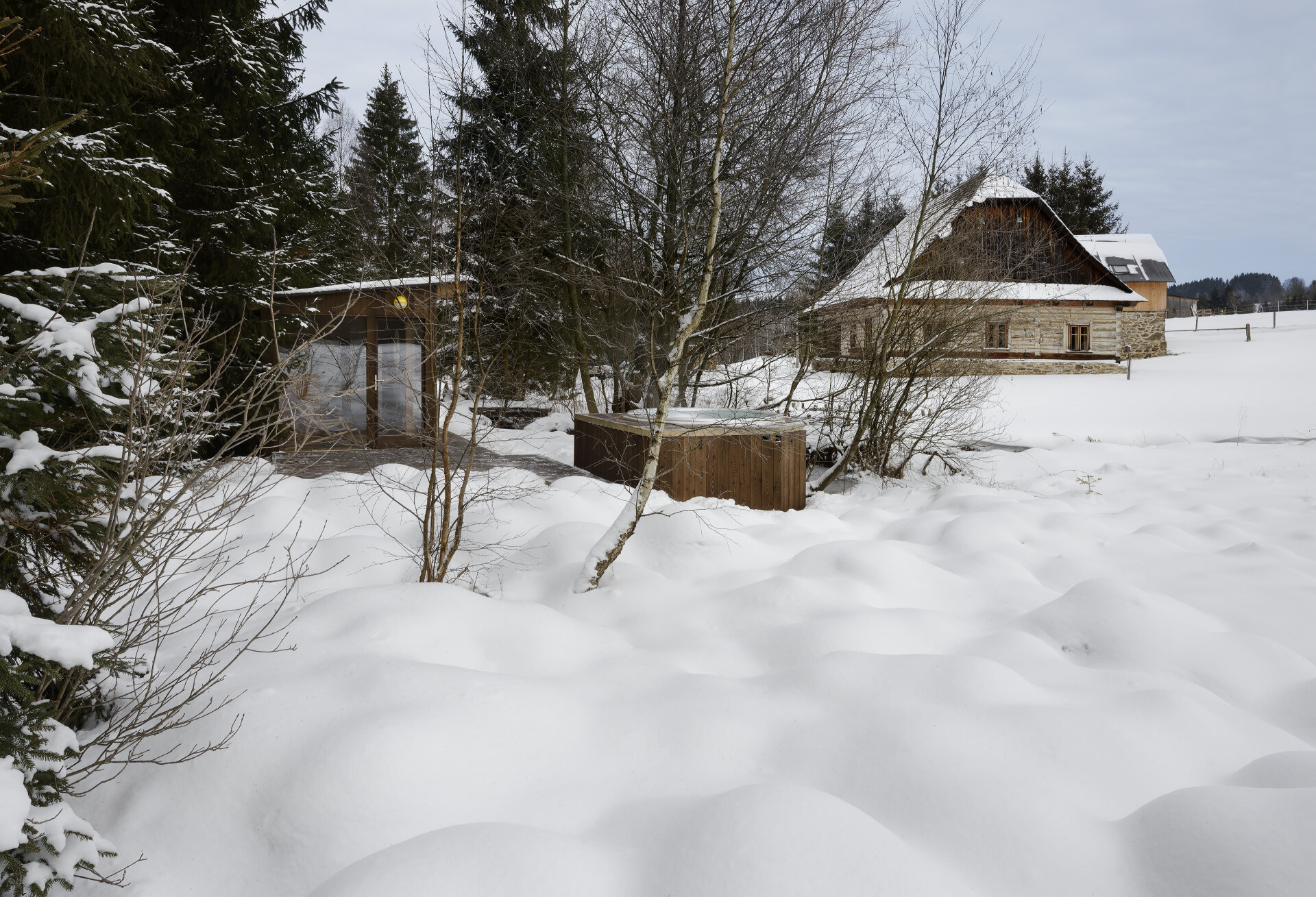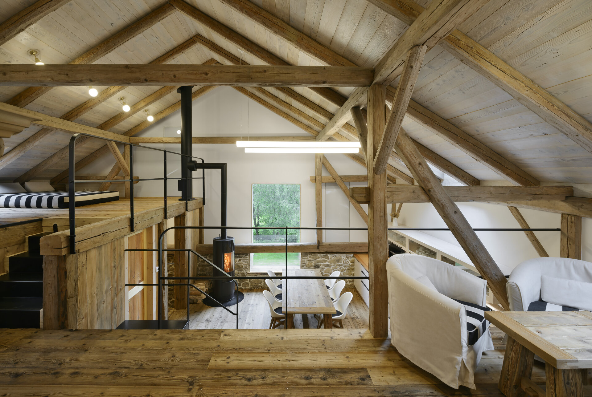 Bedroom South - 1 double bed + 2 single beds, wardrobe, work desk Bedroom north - 1 double bed + 2 single beds, wardrobe, work desk 1st gallery - 2x sofa + 2 armchairs 2nd gallery - playroom for children with double bed Roubenka - owner's recreational housing We have thought of everything you may need during your stay